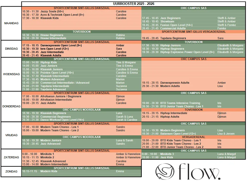 Dansjaar 2025 – 2026 nemen we met 3 teams deel aan wedstrijden: 1 Modern Team en 2 Urban Teams. Ook zij vertegenwoordigen flow. op verschillende evenementen. Dansers die deel uit willen maken van een team moeten hiervoor eerst auditie doen. Wanneer ze toegelaten worden zullen ze meerdere lessen moeten volgen. Voor specifieke voorwaarden per team kan je terecht op de respectievelijke pagina’s.